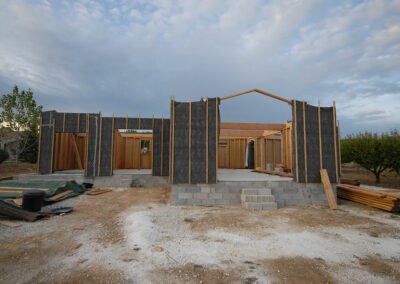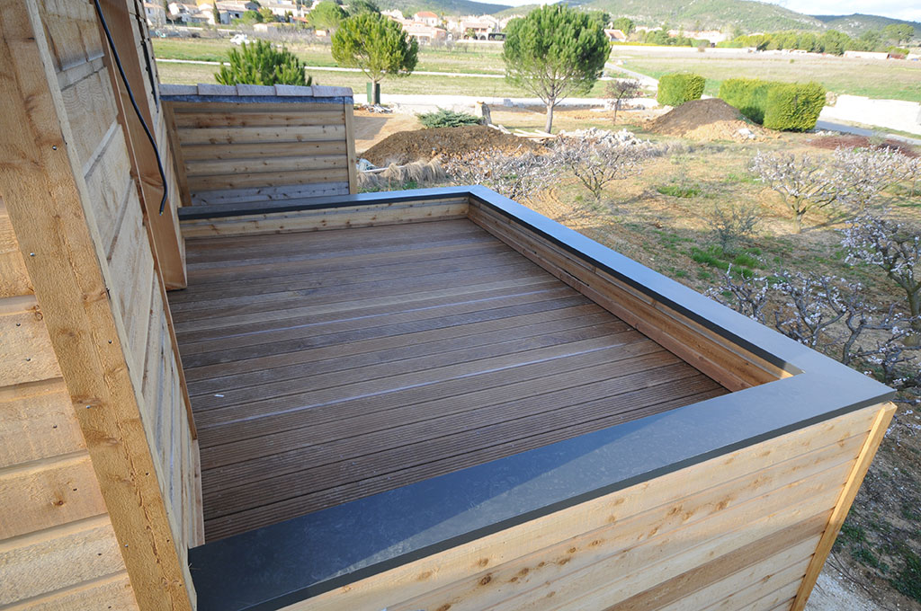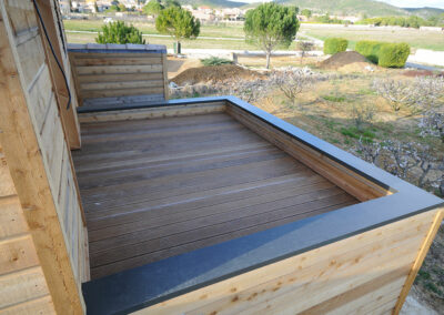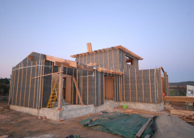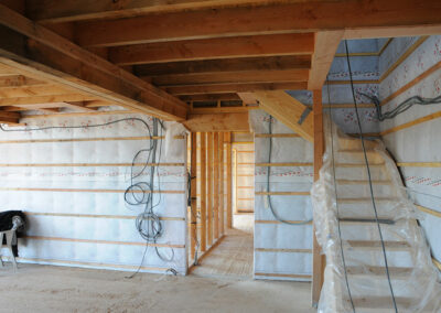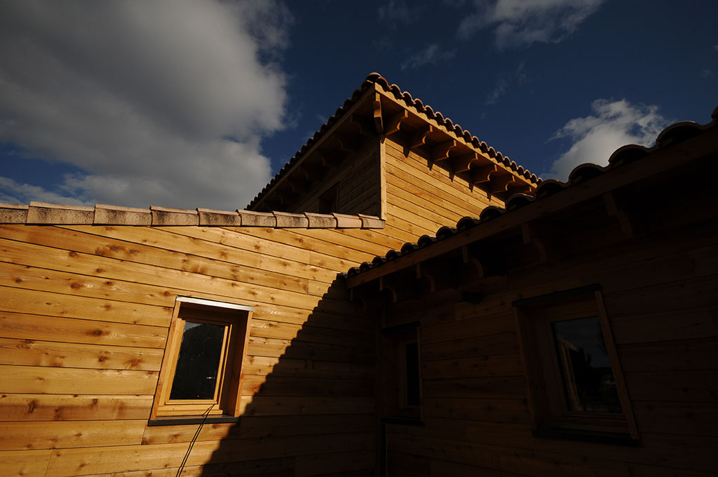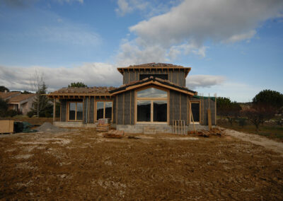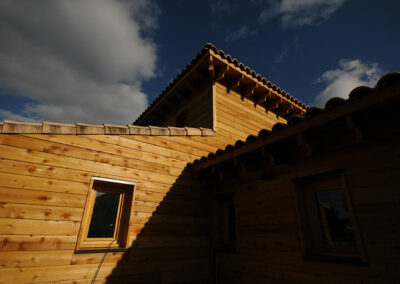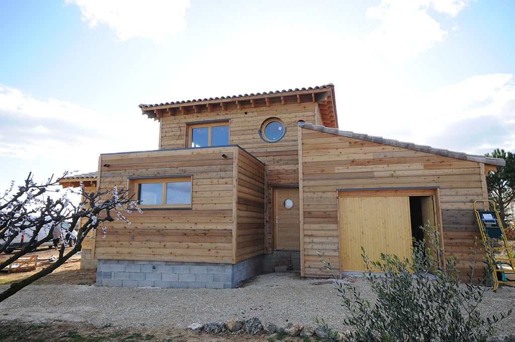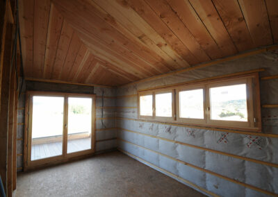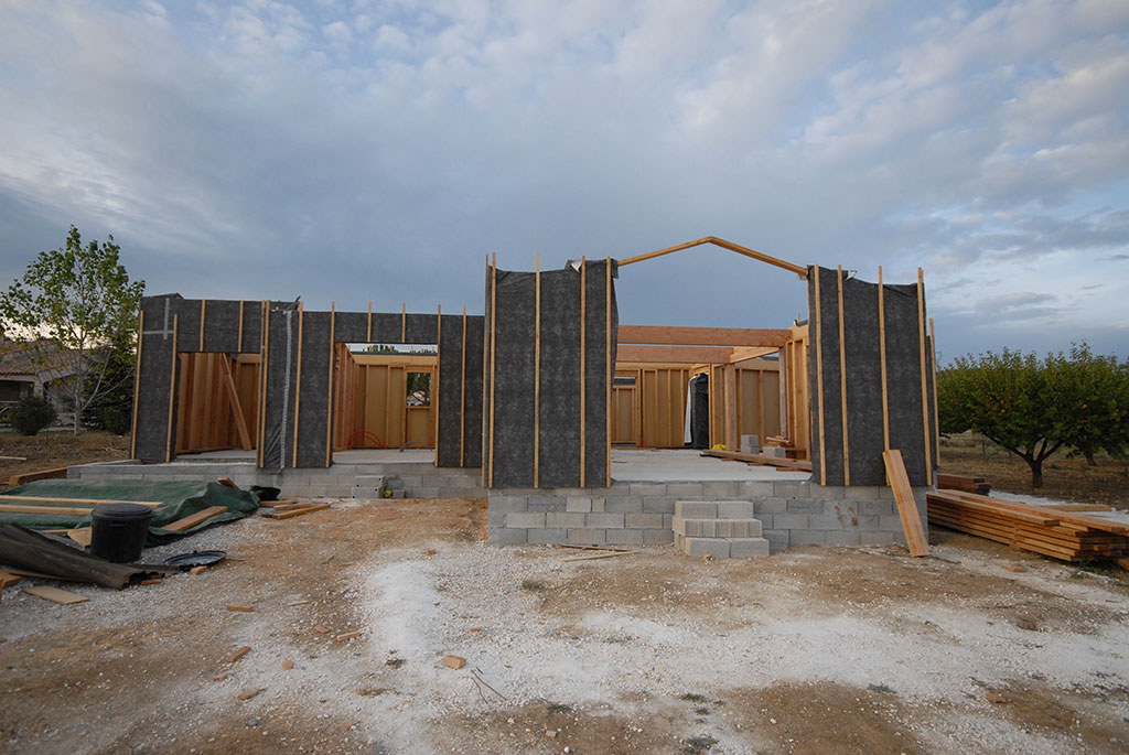 L’ensemble est réalisé comme d’habitude sur une dalle à inertie, pour un confort d’été maximum, et les murs voient leur isolation renforcée par une couche de fibre de bois de 4 cm ce qui porte l’épaisseur totale à 19 cms.